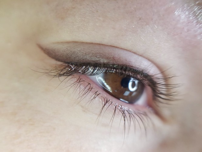 Косметолог аккуратно наносит на веки идеально красивые стрелочки, придавая им четкость и симметричность. Клиентка заранее выбирает тип линии обводки (тонкая или жирная) и оттенок (черный либо цветной). После реабилитации глаза всегда выглядят броскими и ухоженными.