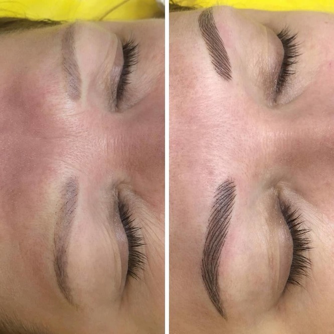 Она напоминает обычный макияж и заключается в прорисовке четкого их контура с последующей растушевкой красителя внутри него. Такой вариант особенно актуален, если собственных волосков у клиентки очень мало. Кроме того, он максимально прост в уходе: после пудрового татуажа понадобится лишь периодически выщипывать волосинки, появившиеся за пределами прорисованного контура.