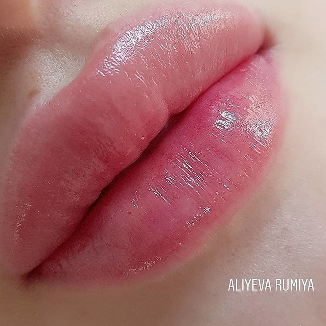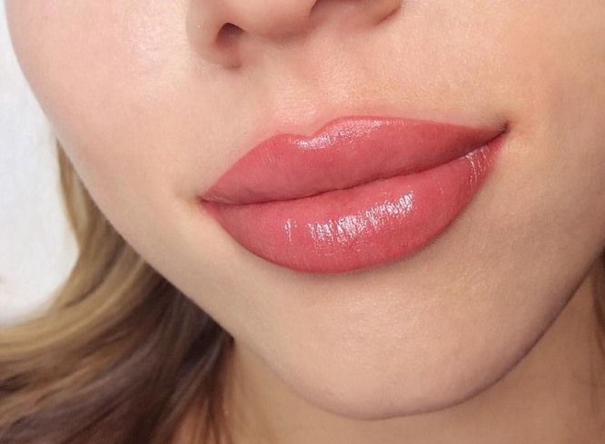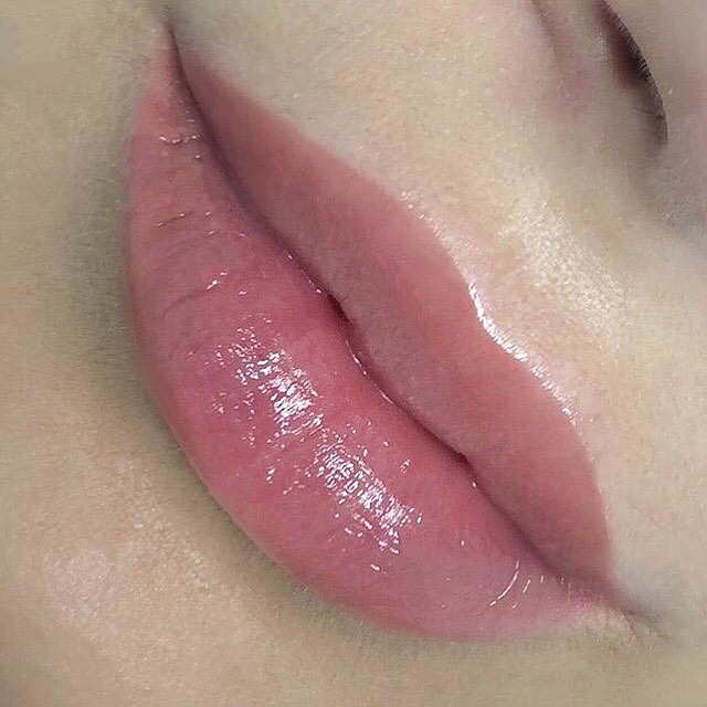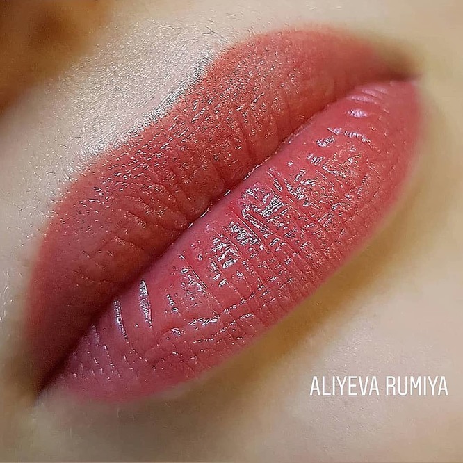 10. Перманент с легким блеском смотрится красиво и женственно, но только на некоторых клиентках. Тонкогубым дамам этот вариант не подходит, так как скрадывает естественный объем и зрительно истончает линию рта.