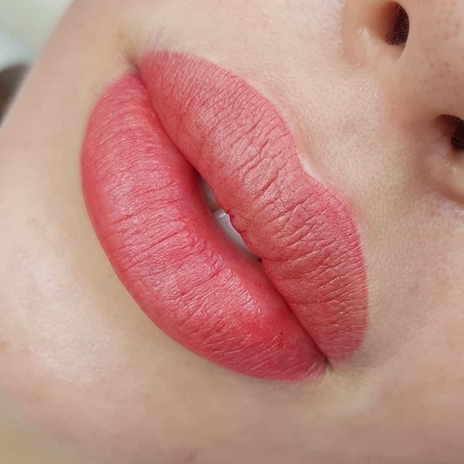 3. Полноценная растушевка кардинально меняет естественный цвет и улучшает общую линии. Для проработки контура и тонировки используется один вид перманента. Иногда два разных тона комбинируются и между ними создается плавный переход, обеспечивающий дополнительную визуальную пухлость и объем.